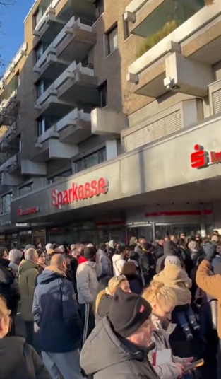Sparkasse银行表示,有95%的客户保险箱被撬开,客户受影响的概率“非常高”。社交媒体公布的影像显示,随着案情披露,大量愤怒客户周二聚集在仍关闭的银行门口,多人称盒内财产价值远超1万欧元的保额。