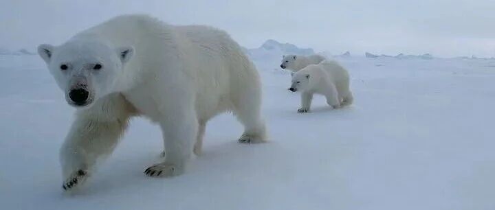 北冰洋高纬度地区的北极熊一家三口(2025年8月31日摄)。