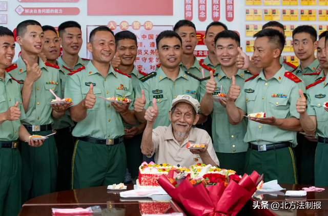 2025年夏天,孙洪秀在武警官兵的陪伴下度过了百岁生日。