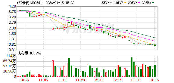 例如,*ST长药(300391)近期股价表现低迷,自2025年12月30日起股价跌破1元,并持续下跌,最新股价已跌至0.68元/股,连续11个交易日收盘价低于1元。近一个月内,*ST长药股价累计下跌超过60%。