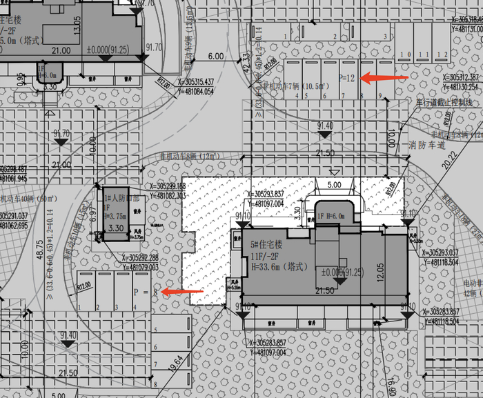 值得关注的是,464个住宅车位中,有20个位于地面(含4个访客车位),主要集中在小区4号、5号楼西侧。