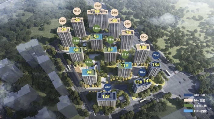 住宅建面约4.02万㎡,规划16栋15层小高层,8栋11层洋房,1栋7层矮板楼,共计421户。