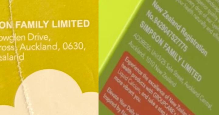 从溯源信息来看,两个产品都是从保税仓发货,而且有完整的报关单。产品包装盒上是全英文标签,生产企业是新西兰的Simpson Family Limited,企业地址也在新西兰。记者注意到,在官方旗舰店产品宣传页上,却是另一个地址。